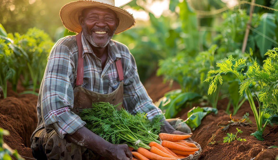 Photorealisticafrican people harvesting diverse vegetables grains